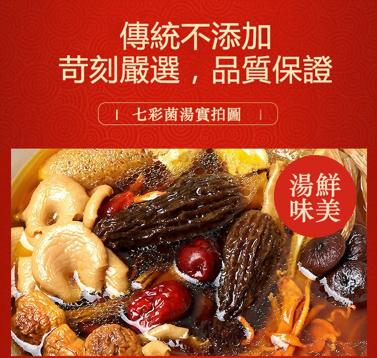7分鐘前自然無硫熏,無添加食用更安心! [秋冬 季節必備的七彩野生菌湯包x10=NT$1150 ]