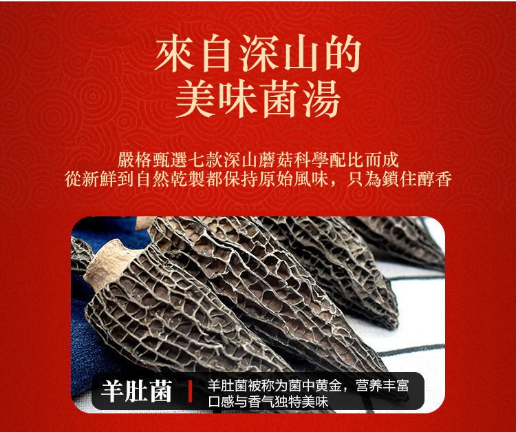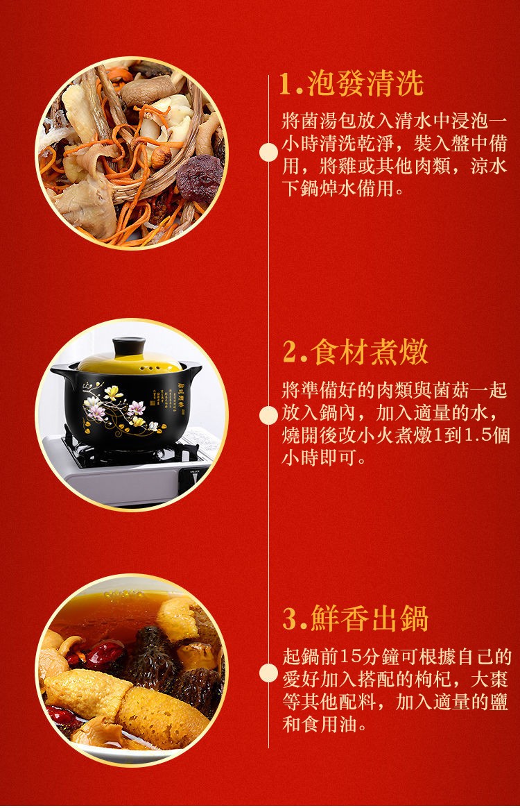 11分鐘前自然無硫熏,無添加食用更安心! [秋冬 季節必備的七彩野生菌湯包x10=NT$1150 ]